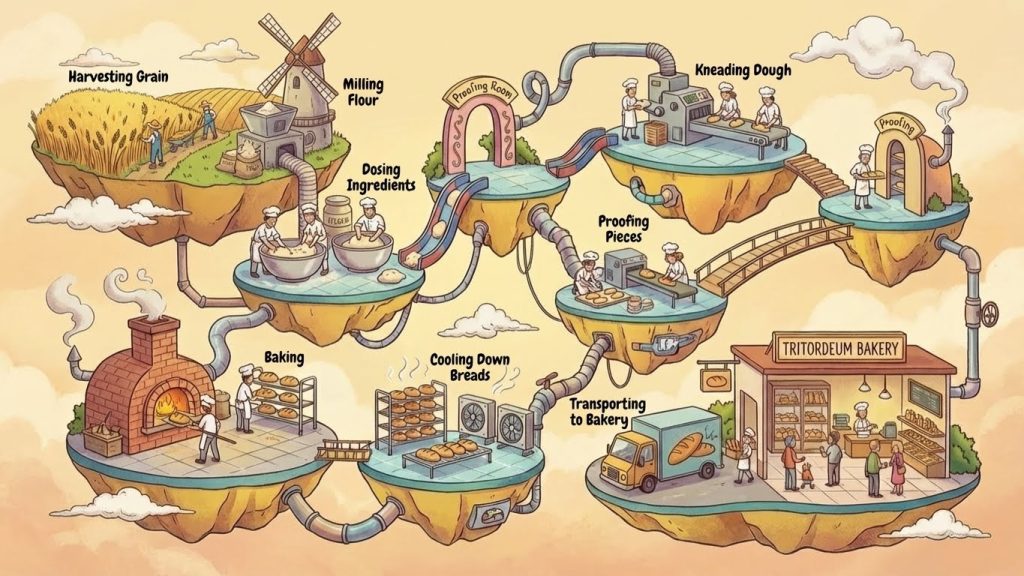 🥖Tritordeum Sourdough Bread with Scalded Flour and Malted Grain Recipe by Maioris Baker This formula combines Tritordeum flour, active Tritordeum sourdough, a hot flour scald, and rehydrated malted grain. The result is a loaf with enhanced moisture retention, mild sweetness from enzymatic activity, and improved crumb softness due to starch gelatinisation in the scald. PREP. […]