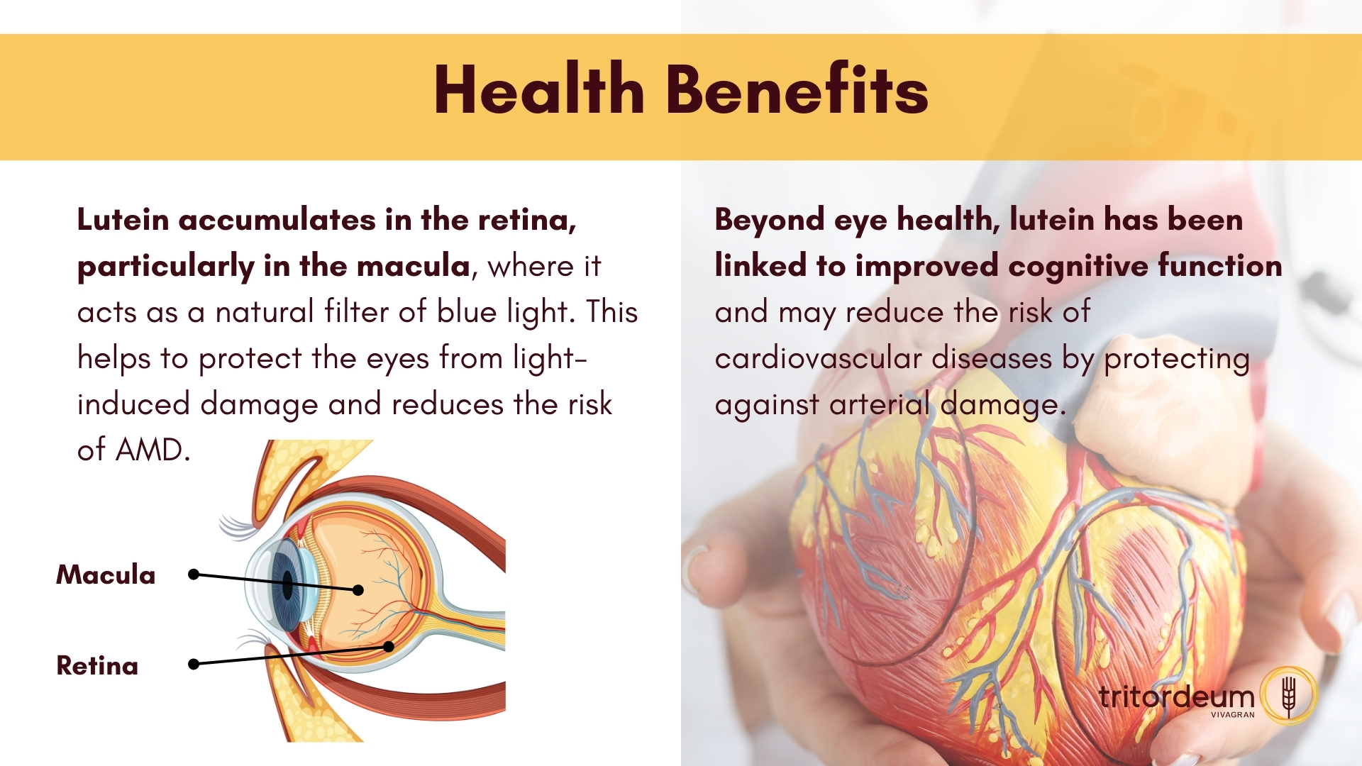 Lutein isn’t just great for your eyes—it’s also essential for brain development, especially in infants. Tritordeum, a unique cereal that blends wheat and wild barley, is naturally rich in this vital nutrient, making it an excellent choice for anyone looking to support both cognitive health and eye function.