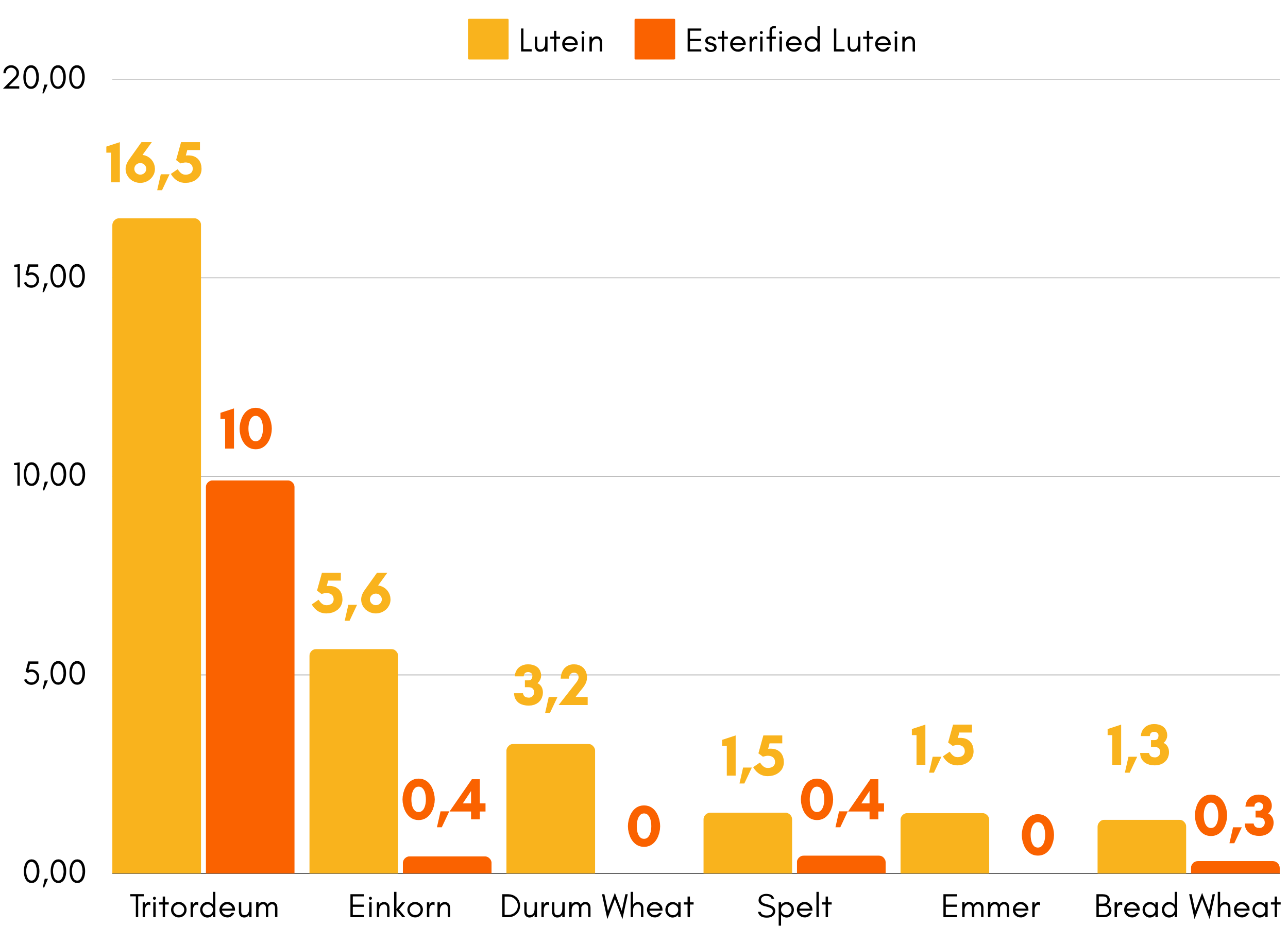 Tritordeum stands out for its exceptional antioxidant profile. It contains carotenoids such as lutein in quantities 5 to 8 times higher than those in durum wheat, along with polyphenols and flavonoids that collectively enhance antioxidant capacity [3]. Lutein is particularly important for eye health and has anti-inflammatory properties beneficial for chronic disease prevention.